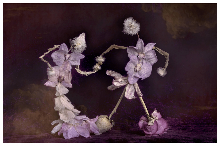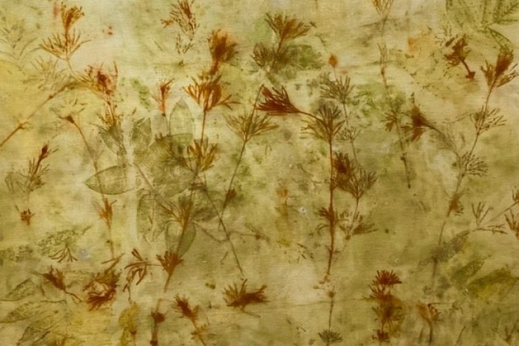 Le lien entre l’être humain et la nature occupe une grande place dans le travail d’Adrian Baker. Ancrées dans l’écoféminisme, ses œuvres suggèrent que ce qui affecte le monde naturel nous affecte aussi. De manière similaire, les notions de fragilité, d’habitats détruits, ou d’impermanence sont au centre de la pratique de Juliana McDonaldCome Walk With Me, sa série de monotypes réalisés à partir de feuilles et d’herbes qu’elle trouve autour de sa demeure, met en lumière l’évolution constante de la nature, à la fois façonnée et menacée par l’action humaine. L’artiste Tiffany April se questionne sur la hiérarchie entre les humains et les autres êtres. Son travail illustre l’intelligence du feu et démontre la capacité de la nature à se déployer de manière équilibrée en réponse à l’action humaine. Saanya Chopra explore l’identité sous le prisme de la déconstruction et du renouveau. Canadienne de deuxième génération, elle questionne les liens entre corps, environnement et identité culturelle. Les paysages de l’écozone boréale sont une constante source d’inspiration pour Wendy Feldberg. Ses œuvres font écho aux plantes de son jardin ou à celles qu’elle trouve dans son environnement. Elle réalise ses monotypes avec des pigments de plantes et de sols, appliqués directement sur des fibres naturelles par éco-impression. Le travail de Linh VH Nguyen explore la mémoire, l’identité et l’émotivité en lien avec le corps humain et est composé de couches de matières organiques. Ses œuvres, créées à partir de restes de fleurs et de mauvaises herbes séchées, amènent à repenser notre idée du beau.