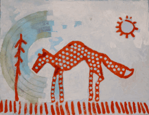 This piece is a digitization of a birch bark biting that has then been reproduced through risograph printing. The biting can be interpreted as chickadees flying around flowers.